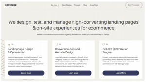 | 8 | SplitBase | Up to 3x faster experiment cycles (client survey) | “Testing Trifecta”: A/B, usability, copy testing | No explicit guarantee | SaaS trial/demo pages optimized via heatmaps and copy testing |