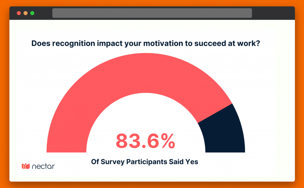Alt text: over 83% of employees say recognition motivates them to succeed at work