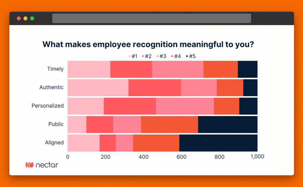 - Recognition drives performance. A Gallup study found that employees who feel recognized are four times more likely to be engaged at work. Engaged employees show up, go the extra mile, and deliver better results. According to Nectar, over 83% of employees say recognition motivates them to succeed at work.