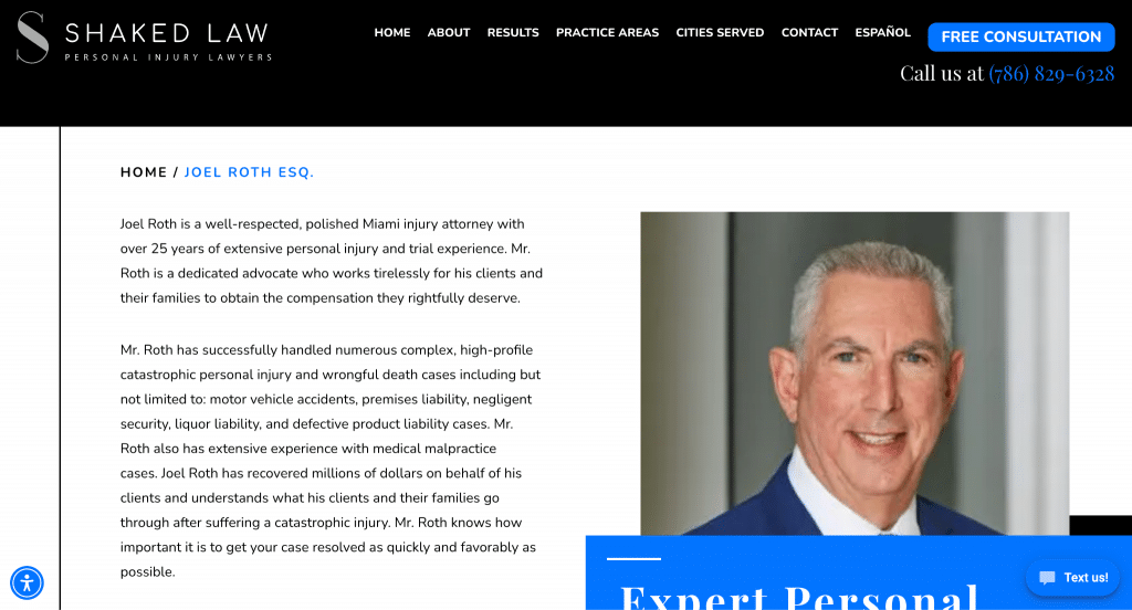 The Kenny Habetz Injury Law and Shaked Law firms even dedicate a page to each of their lawyers.