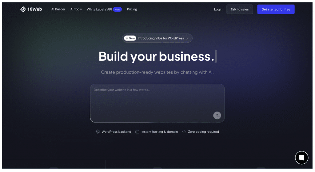 10Web uses AI to rebuild and optimize WordPress websites automatically. For teams already relying on WordPress but wanting modern speed and automation, it’s a smart bridge. You can import an existing site, and the platform’s AI replicates its design while optimizing for performance and Core Web Vitals.
