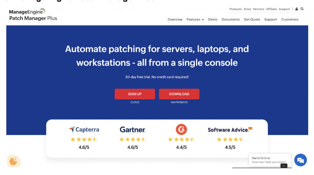 The platform offers both cloud and on-premises deployment, giving flexibility to organisations with mixed infrastructure or strict compliance requirements. Its automation engine manages the full patch lifecycle, from scanning and testing to approval, deployment, and reporting.