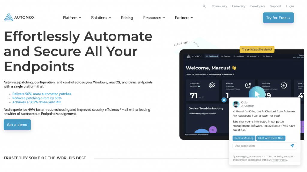 Automox delivers cloud-based, automated patch management for modern, distributed workforces. Built for simplicity and scalability, it supports Windows, macOS, and Linux, offering policy-driven patching and remediation through a single, lightweight agent.