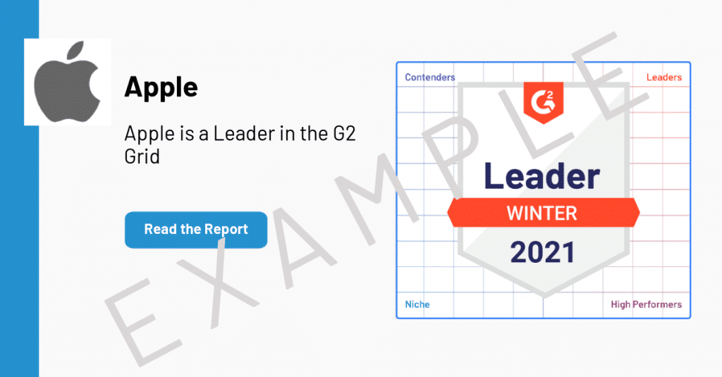 In this example, G2 extends its product offering by showing the prospect what success would look like and telling them a story: