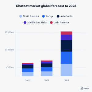 AI chatbots are now common in e-commerce and healthcare. They handle customer service and sales inquiries, 24/7. The global chatbot market shows this rapid adoption. It is projected to grow from $4.7 billion in 2020 to $15.5 billion by 2028. This is an annual growth rate of 23%. It shows us that AI chatbots can improve customer experiences and simplify operations.
