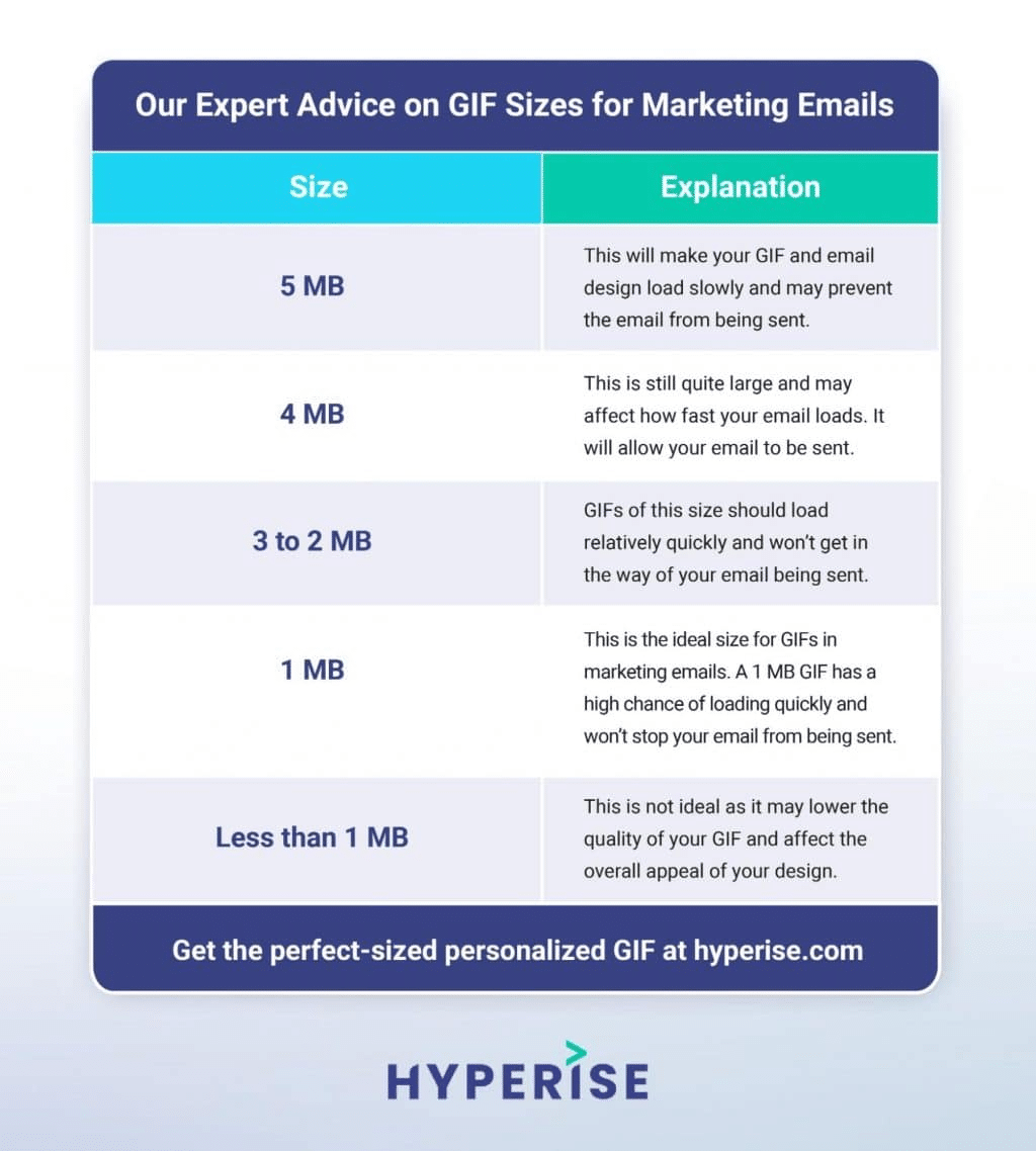 The file size of your GIF is important. A GIF with a large size (more than 1 MB) can slow down the loading time of your email, potentially deterring engagement.