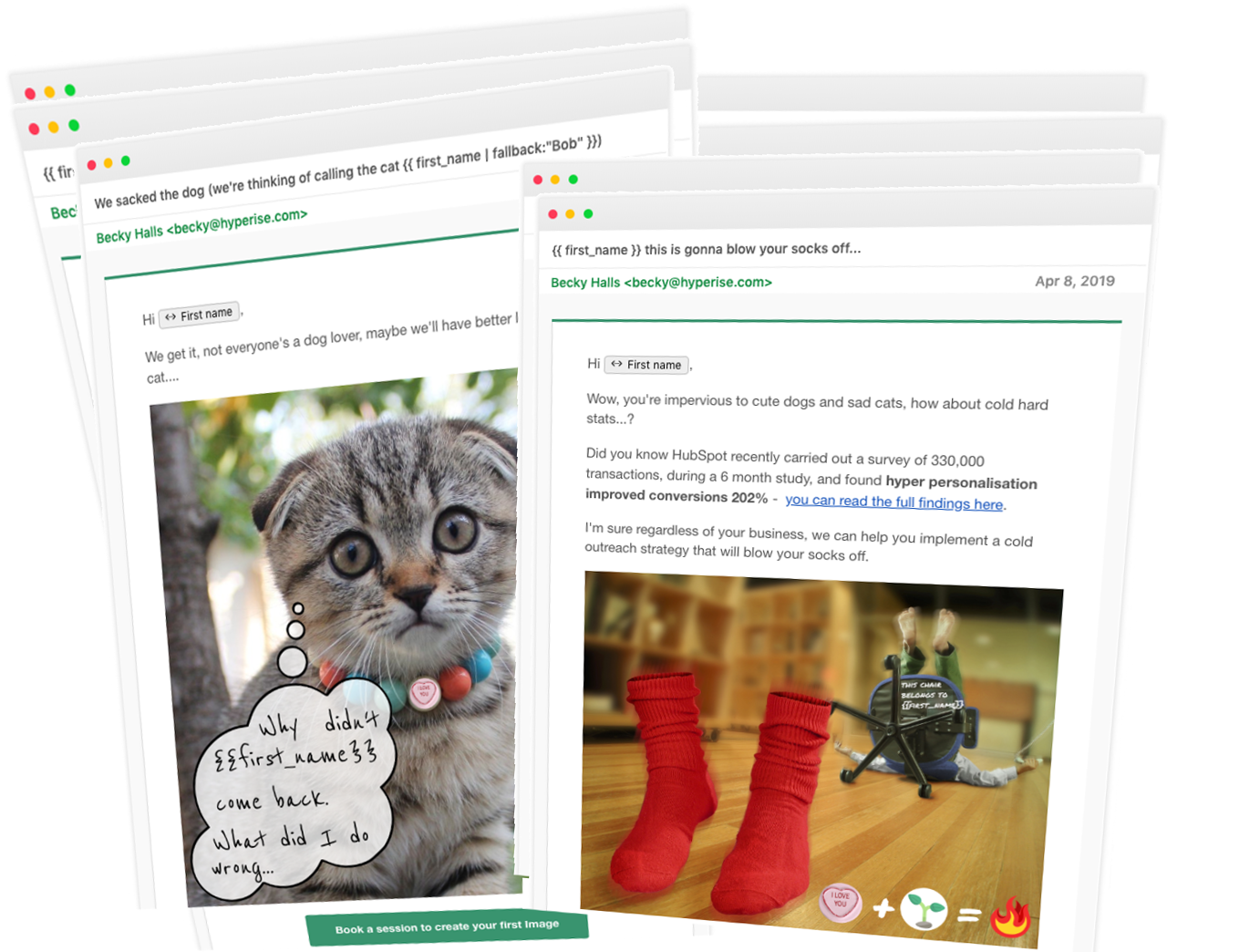 Hint: If you don’t want to go down the route of a picture of you or your team, within Hyperise we have 100’s of templates and images that can be creatively used to deliver personalisation and humour.