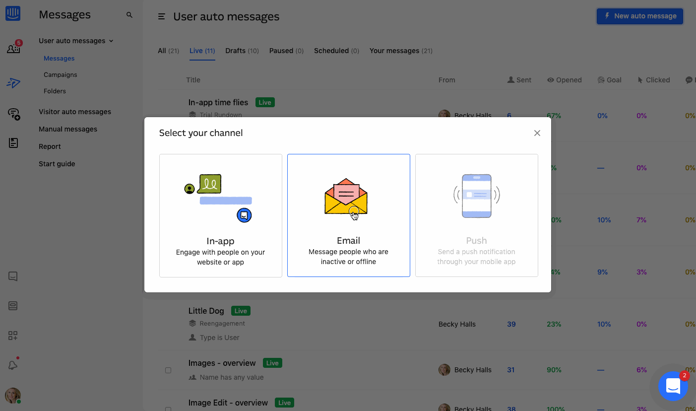 - Go to Intercom and edit your existing message, or create a new email message.