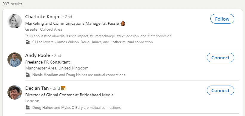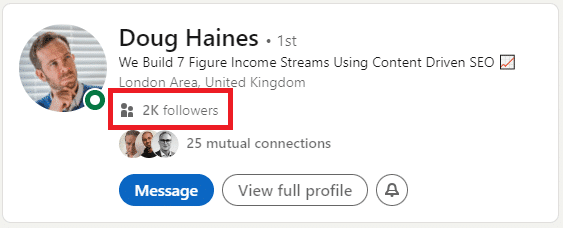 2. Take a look at your existing clients or connections on LinkedIn who work in digital marketing. Try to find one with a lot of followers.