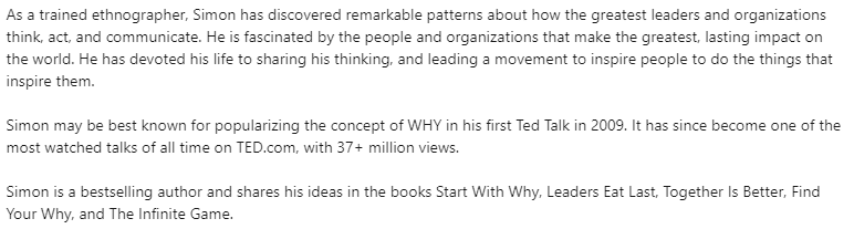 Here’s a good example from one of LinkedIn’s most well-known members, Simon Sinek:
