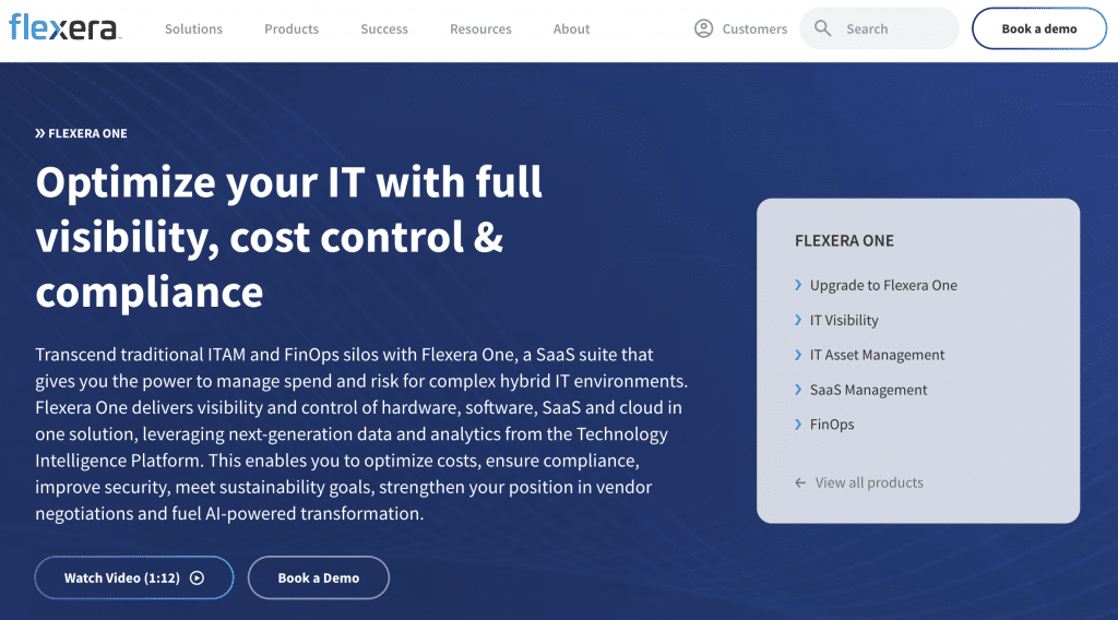 Flexera One focuses on cloud cost management, governance, and compliance. Originally known for its IT asset management roots, Flexera has evolved into a comprehensive FinOps and hybrid cloud visibility platform.
