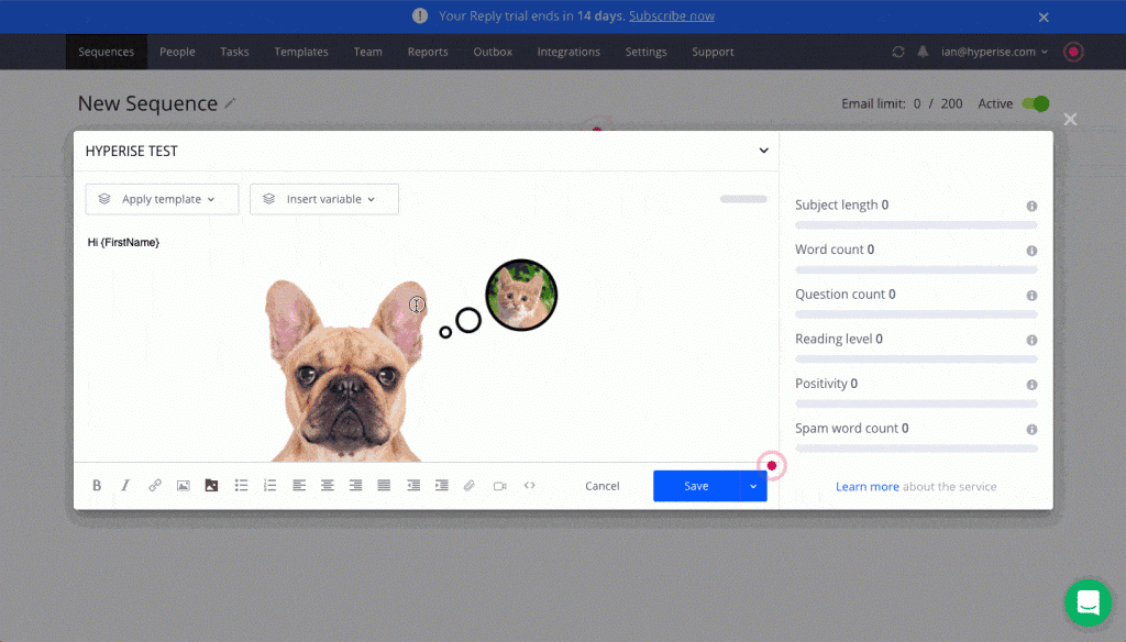Reply is designed for sales teams and helps Account Executives and SDRs automate communications with your existing or potential clients and put email outreach on autopilot while keeping communication personal.