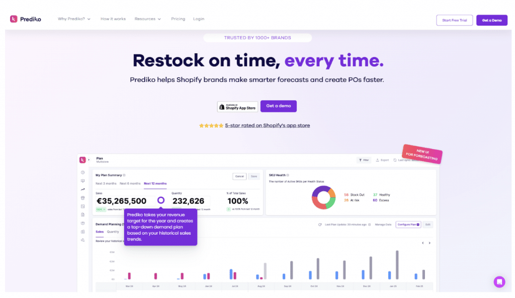 Best for: Preventing stockouts and overstocks through predictive analytics