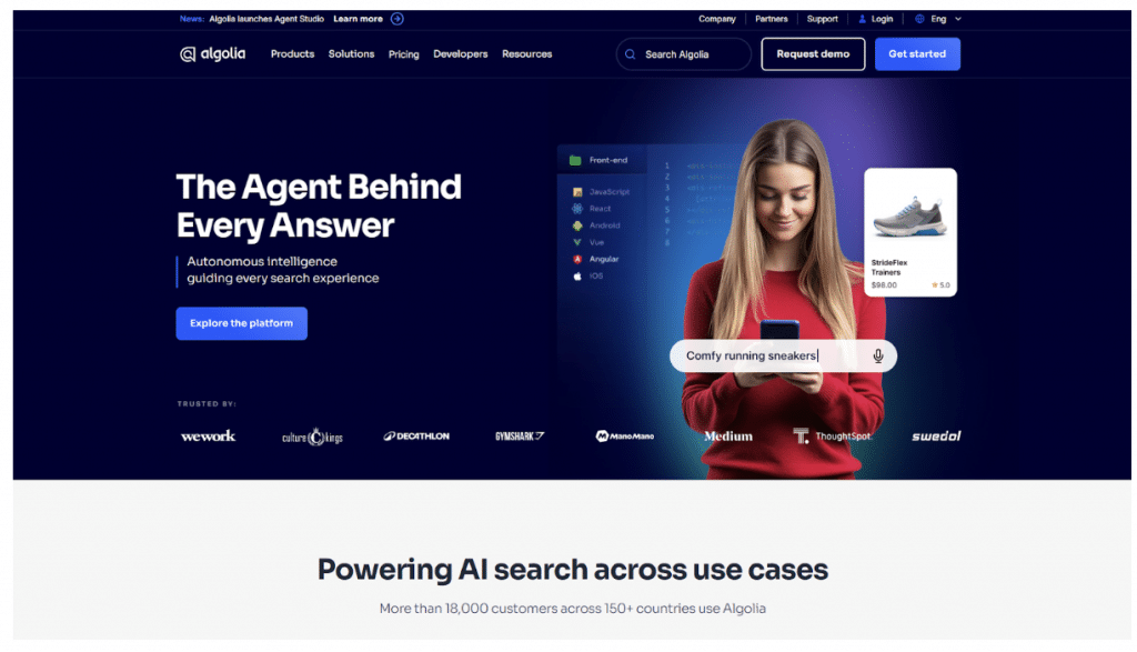 Algolia’s search technology powers instant, typo-tolerant search that understands user intent and delivers relevant results in milliseconds.